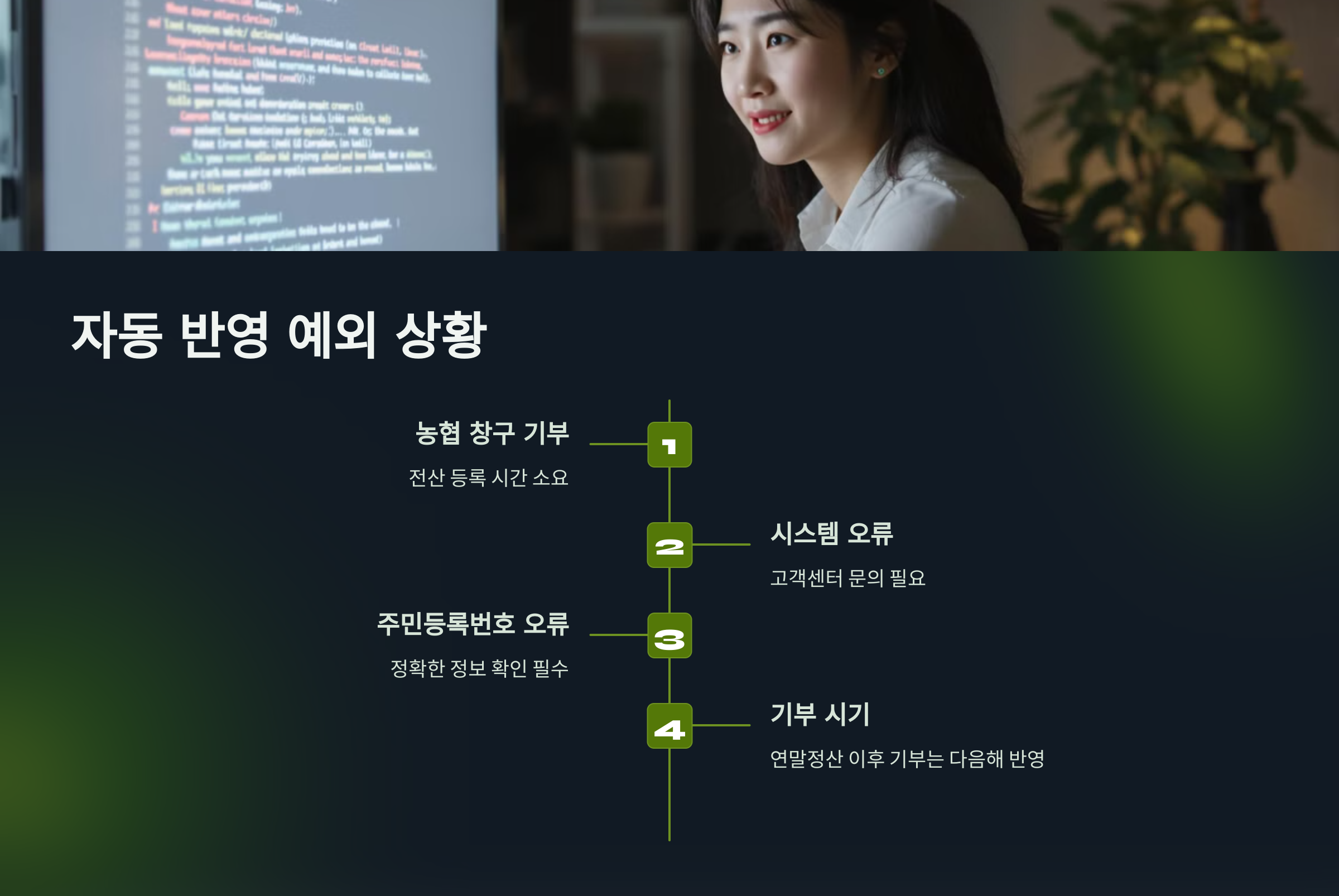 고향사랑 기부제의 연말정산 자동 반영과 관련하여 몇 가지 주의사항을 알려드립니다.