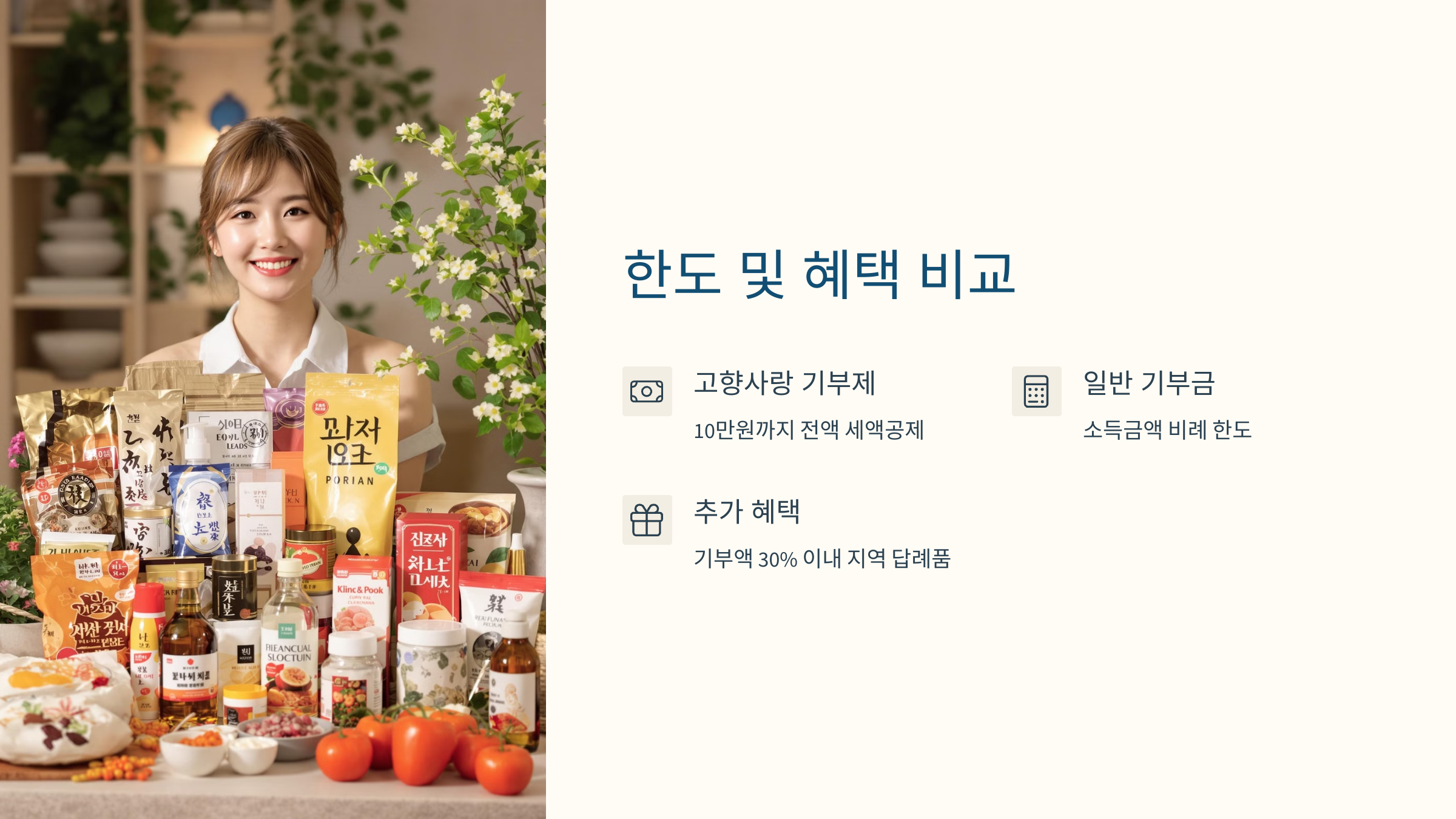 예시: 10만 원 기부 시, 13만 원 상당의 혜택 (세액공제 10만 원 + 답례품 3만 원)