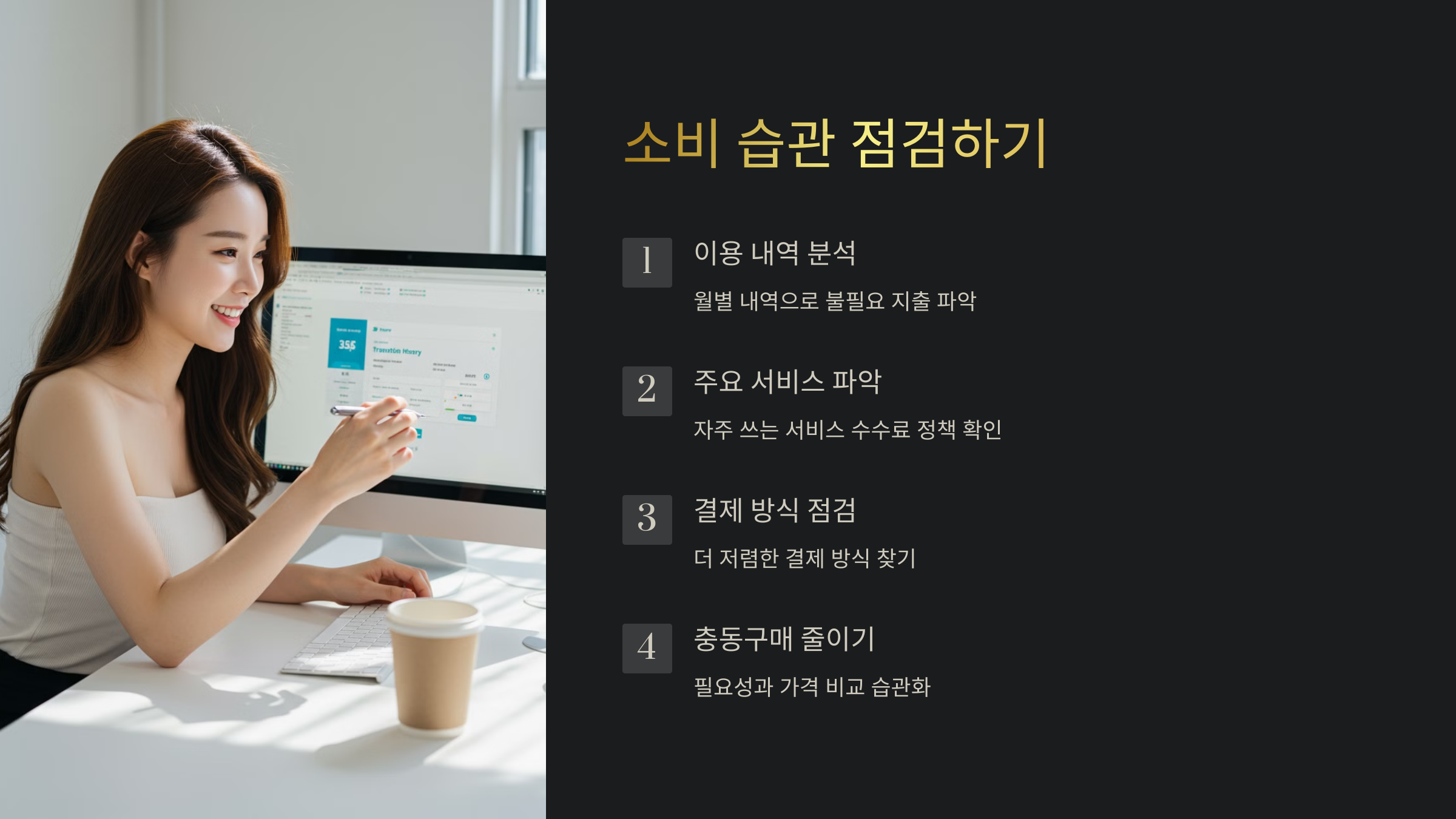 - 결제 방식 점검: 자신이 주로 어떤 방식으로 결제하는지 점검하고, 더 저렴한 결제 방식은 없는지 알아봅니다.