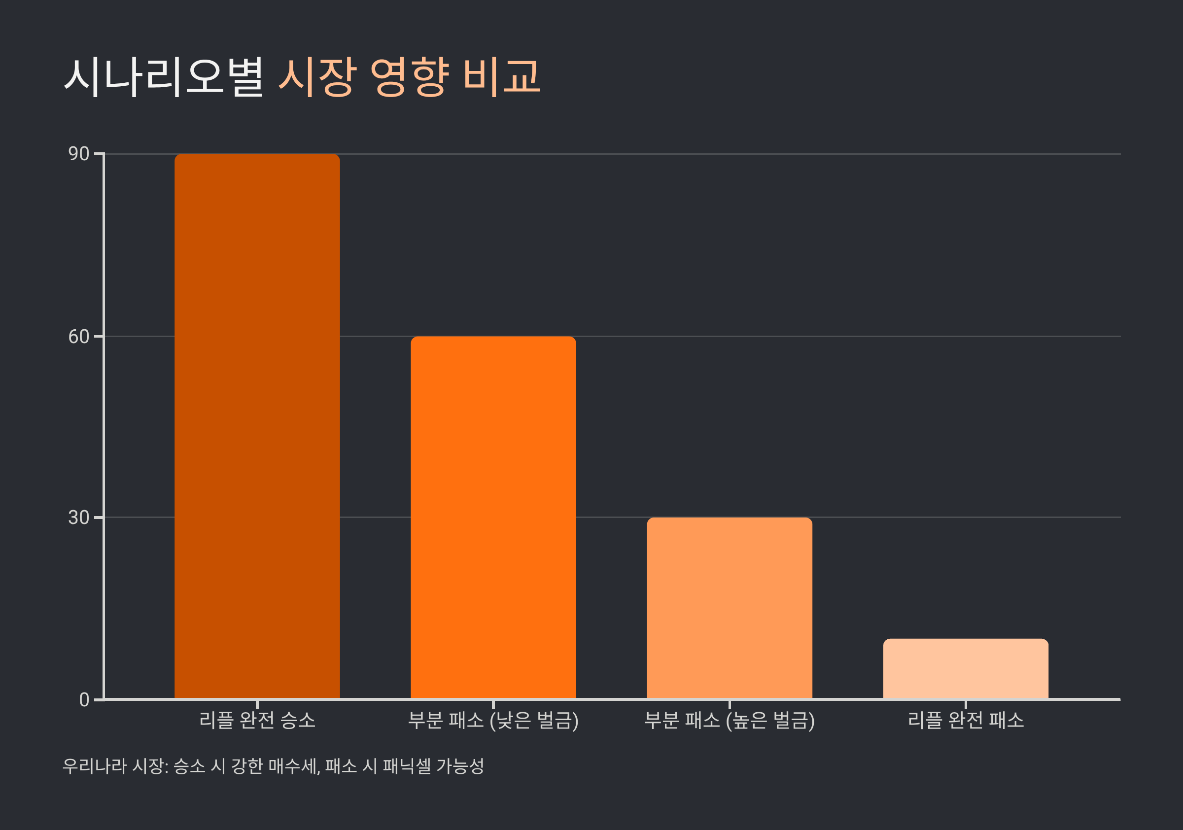 | 구분 | 시나리오 1: 리플 완전 승소 | 시나리오 2: 부분 패소 (벌금형) | 시나리오 3: 리플 완전 패소 |