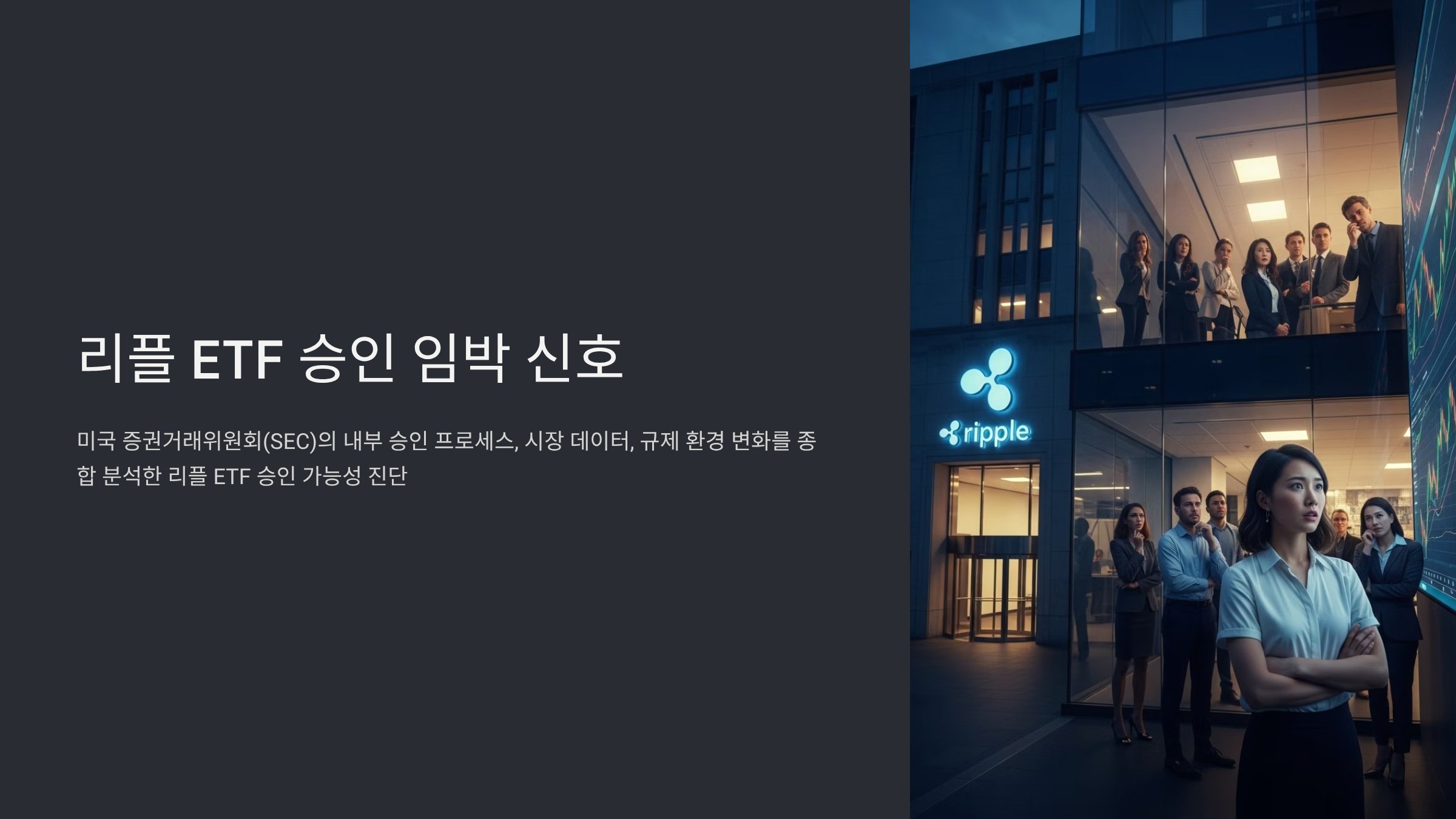 리플 etf 승인 날짜, SEC 최종 결정 임박 신호가 시장 곳곳에서 포착되면서 투자자들의 기대감이 고조되고 있습니다. 본 포스팅은 단순한 희망 회로가 아닌, 미국 증권거래위원회(SEC)의 내부 승인 프로세스, 시장 데이터를 기반으로 한 구체적인 시그널, 그리고 규제 환경의 변화를 종합적으로 분석하여 리플 ETF 승인 가능성을 심도 있게 진단하고, 투자자들이 주목해야 할 핵심 포인트를 전문가적 관점에서 제시합니다.