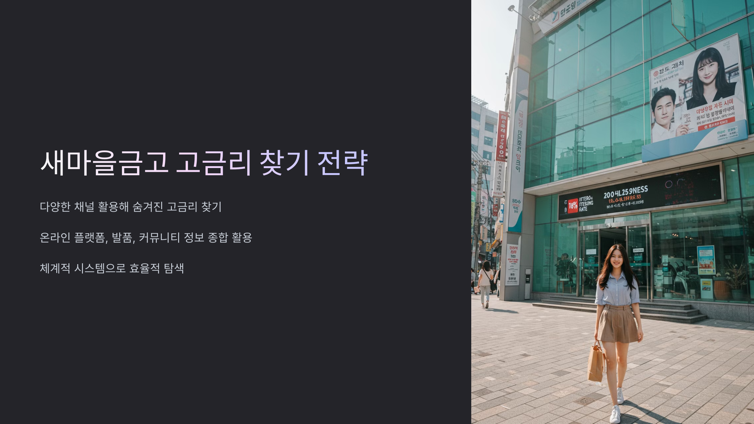 온라인 플랫폼만으로는 찾기 어려운, 소위 '숨겨진' 고금리 새마을금고 금리 정보는 여전히 존재합니다. 특히 조합원 대상 비공개 특판이나, 짧은 기간 진행되는 게릴라성 특판은 온라인 공시 전에 마감되기도 합니다. 이러한 정보를 얻기 위해서는 약간의 노력이 필요합니다.