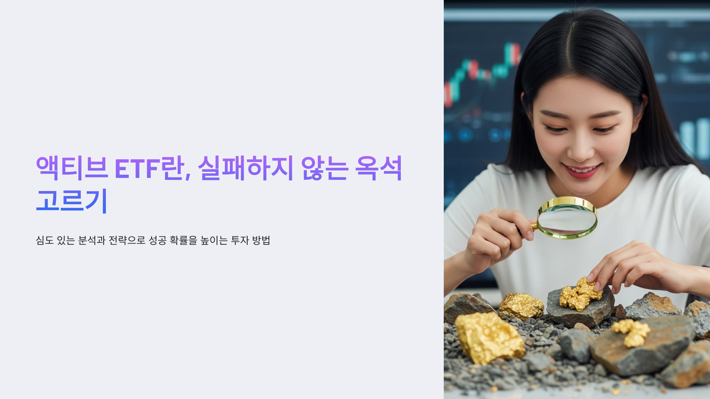 액티브 etf란, 실패하지 않는 옥석 고르기는 단순히 과거 수익률 순위만 확인하는 것을 넘어서는, 심도 있는 분석과 전략을 요구하는 과정입니다. 이 글은 이미 액티브 ETF의 기본 개념을 이해한 투자자가 실전 투자에서 성공 확률을 높일 수 있도록, 운용 철학을 꿰뚫어 보는 법부터 포트폴리오에 실제로 적용하는 구체적인 방법론까지 전문가의 시각에서 제시하여 실질적인 도움을 드리고자 합니다.