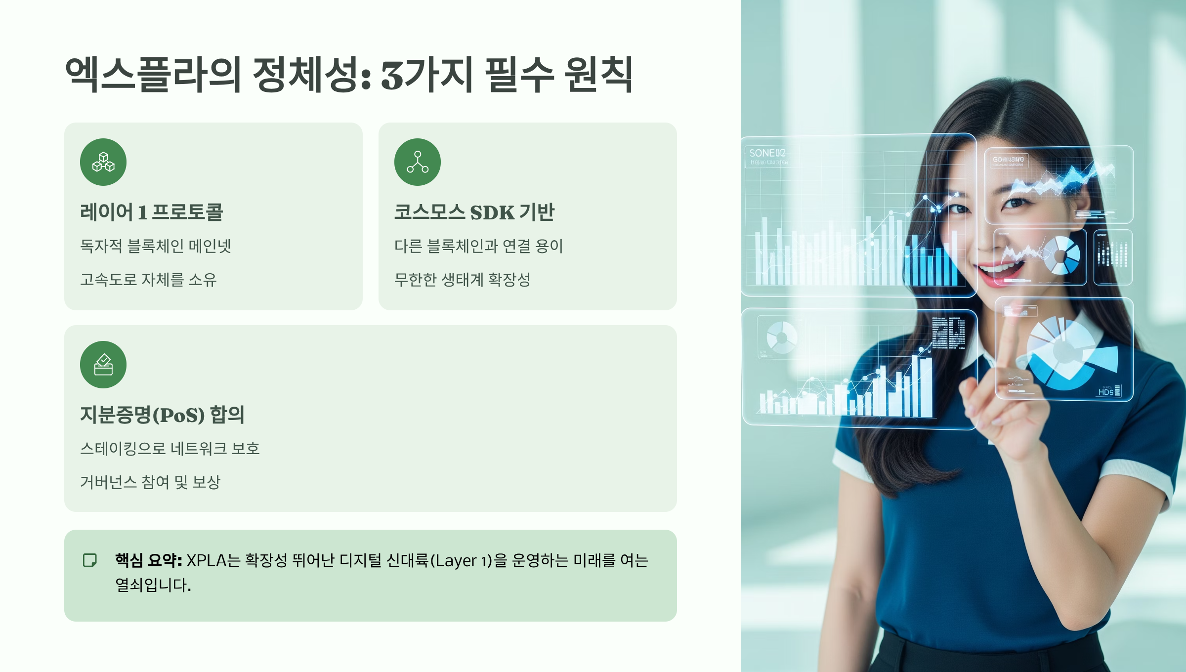 XPLA의 복잡한 정체성을 코인 왕초보의 눈높이에 맞춰 가장 중요한 3가지 원칙으로 압축해 설명드립니다. 이 3가지만 이해하면 XPLA의 본질을 완벽히 파악할 수 있습니다.
