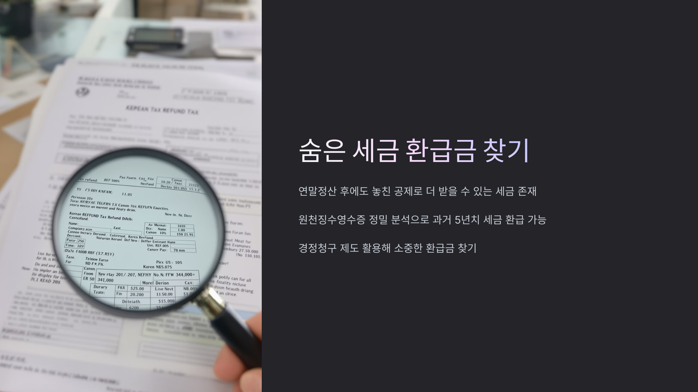 원천징수영수증 발급부터 숨은 환급금 찾기: 5년치 경정청구 활용 극대화 전략, 단순히 작년 연말정산을 확인하는 것을 넘어, 지난 5년간 납부한 세금 중 과다 납부된 부분을 적극적으로 찾아 환급받는 '경정청구' 활용법을 심층적으로 다룹니다. 이 글은 세금 전문가의 관점에서 과거 원천징수영수증들을 체계적으로 검토하고, 경정청구 성공률을 높이는 실질적인 전략과 고액 환급 가능성이 있는 항목들을 집중 조명하여, 독자 여러분의 잠자는 세금을 깨우는 구체적인 로드맵을 제시합니다.