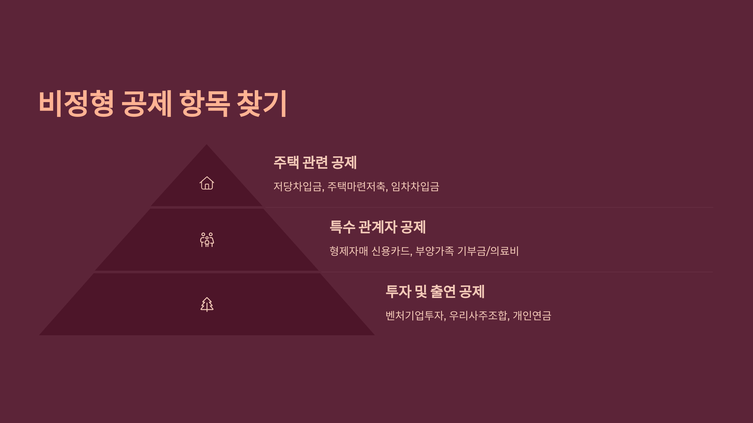 다음은 전문가들이 주목하는 대표적인 비정형 공제 항목들입니다.