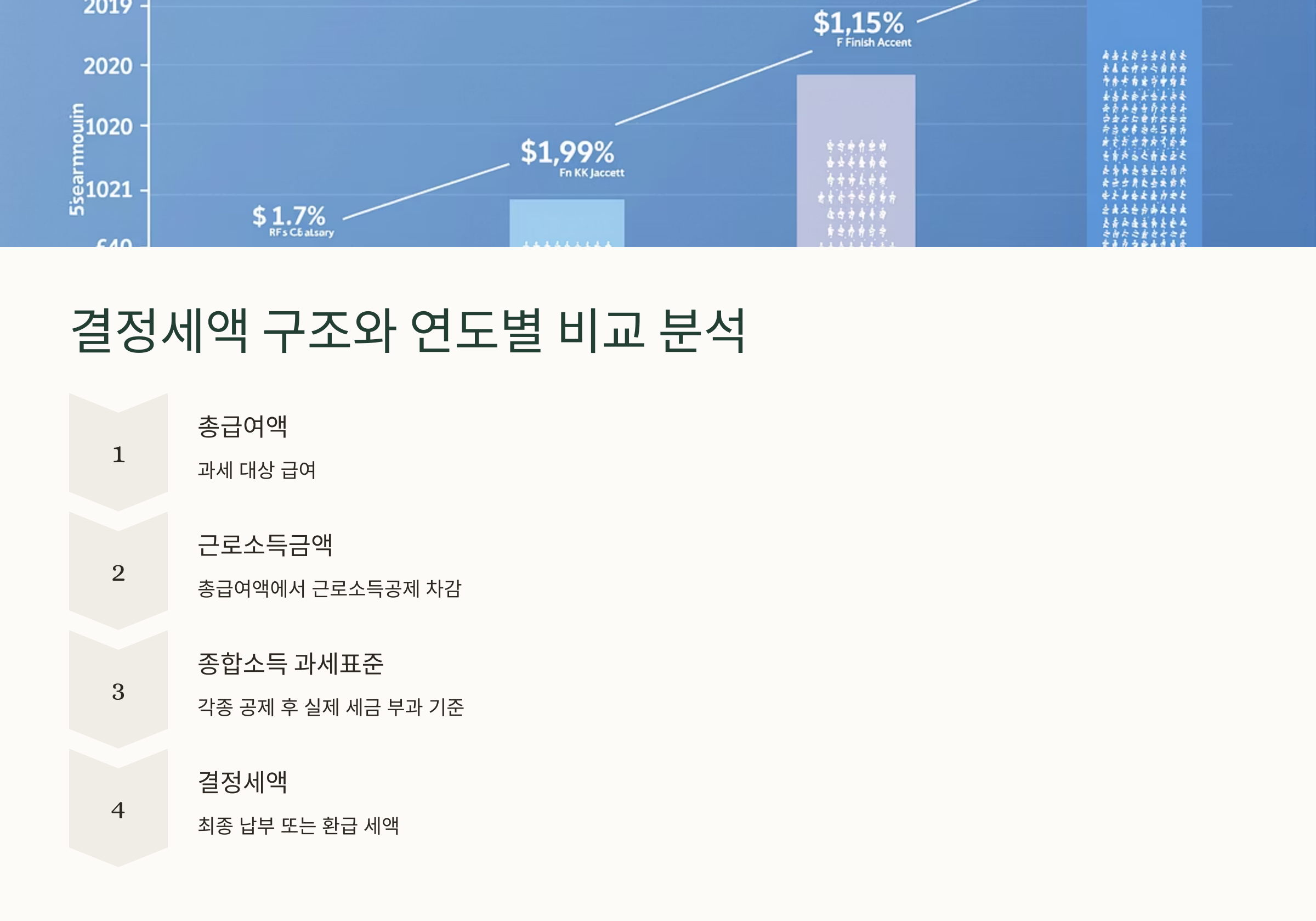 - 연도별 주요 항목 비교 분석: 각 연도별 '총급여액', '결정세액', '차감징수세액'의 변동 추이를 파악합니다. 특히 결정세액이 크게 변동한 해가 있다면, 그 사유(소득 변동, 공제 항목 변화 등)를 집중적으로 살펴봅니다.