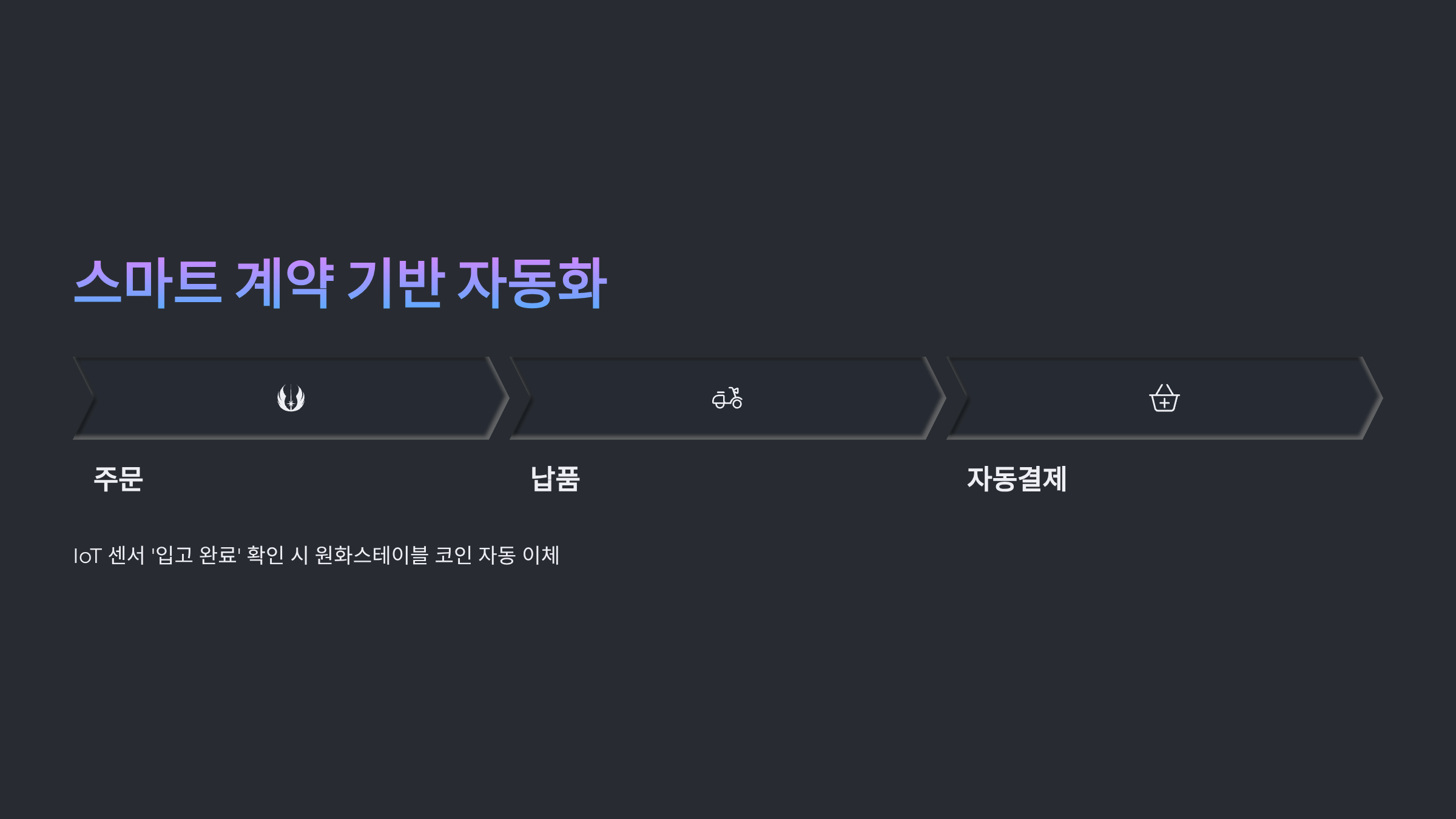 | 자동화 수준 | 수작업 기반 (송장, 세금계산서 확인) | 스마트 계약 기반 조건부 자동 실행 |