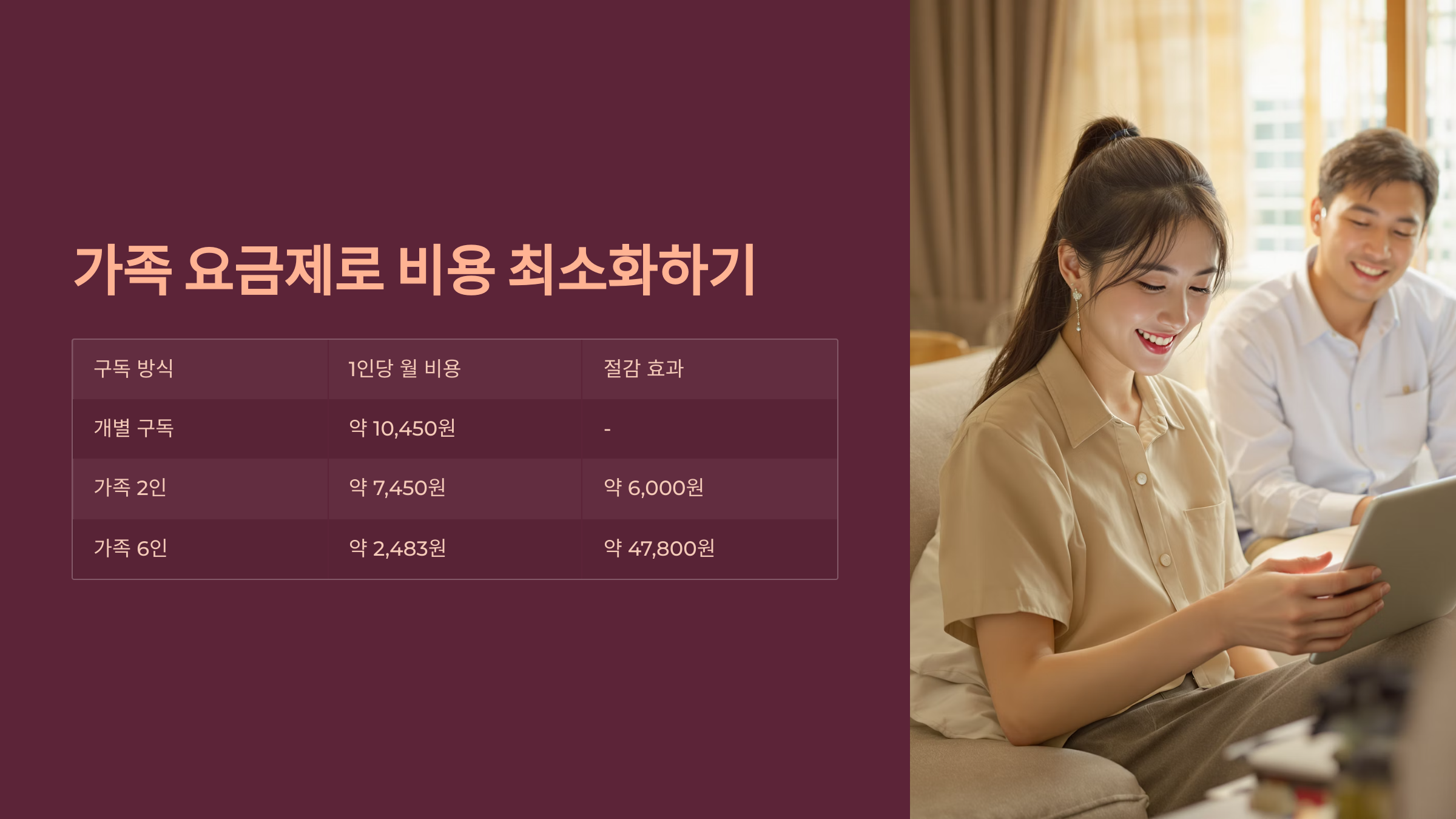 가족 요금제 활용: 1인당 구독 비용 최소화 전략