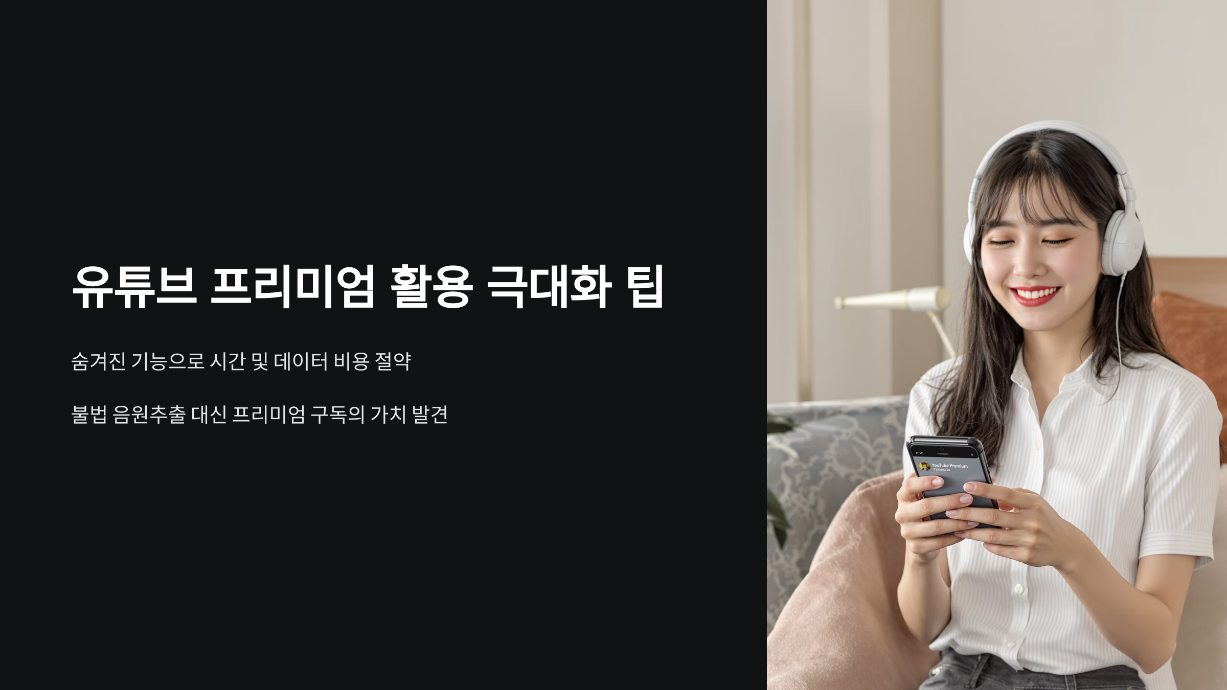 - 음악+영상 시너지 활용: 유튜브 프리미엄을 통해 음악 감상과 뮤직비디오 시청을 광고 없이 끊김 없이 즐기며 통합된 경험을 누립니다.