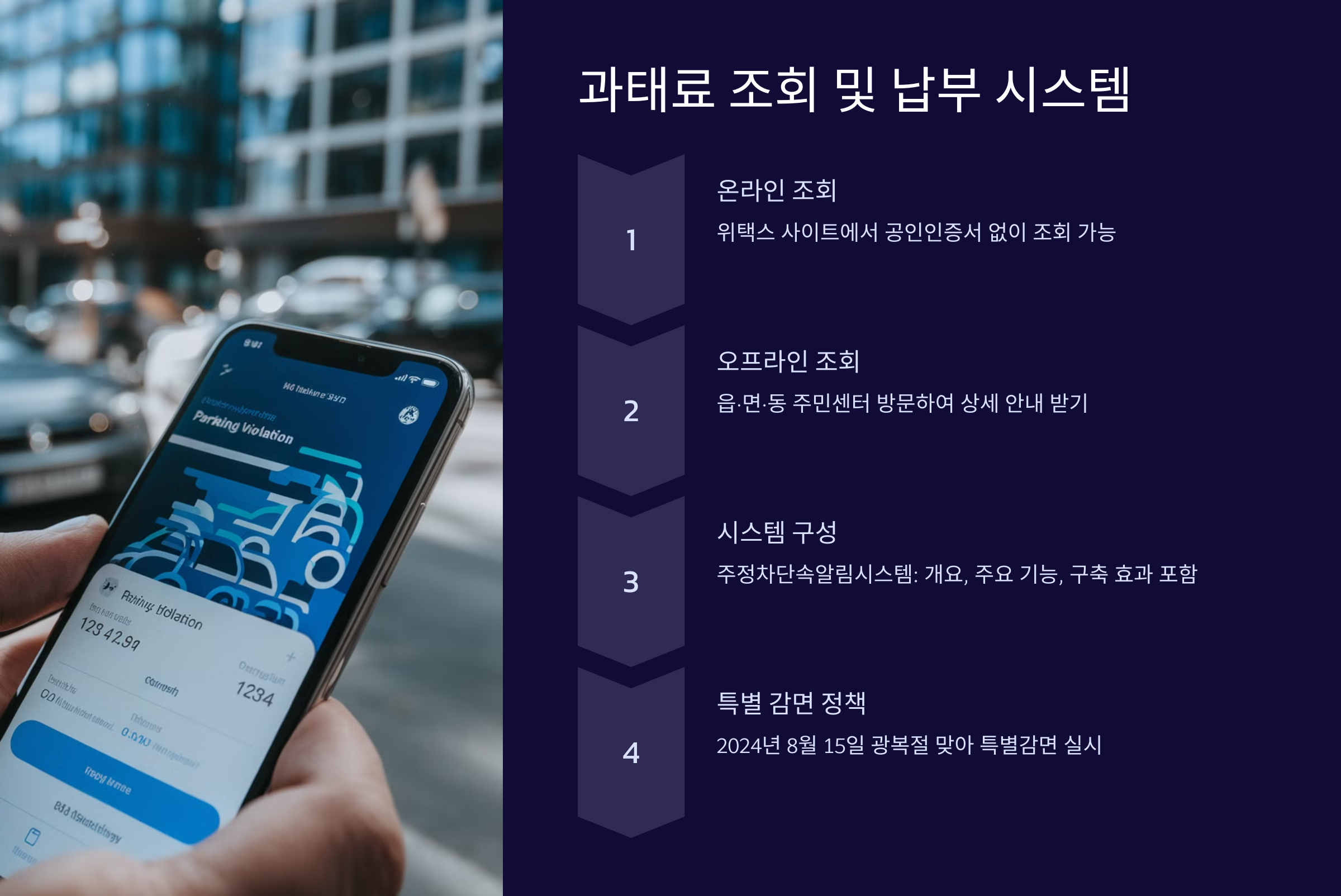 특히 시스템을 통해 주정차 위반뿐만 아니라 전용차로 위반, 녹색교통지역 운행제한 위반 등 다양한 교통 관련 과태료를 통합적으로 관리할 수 있습니다.