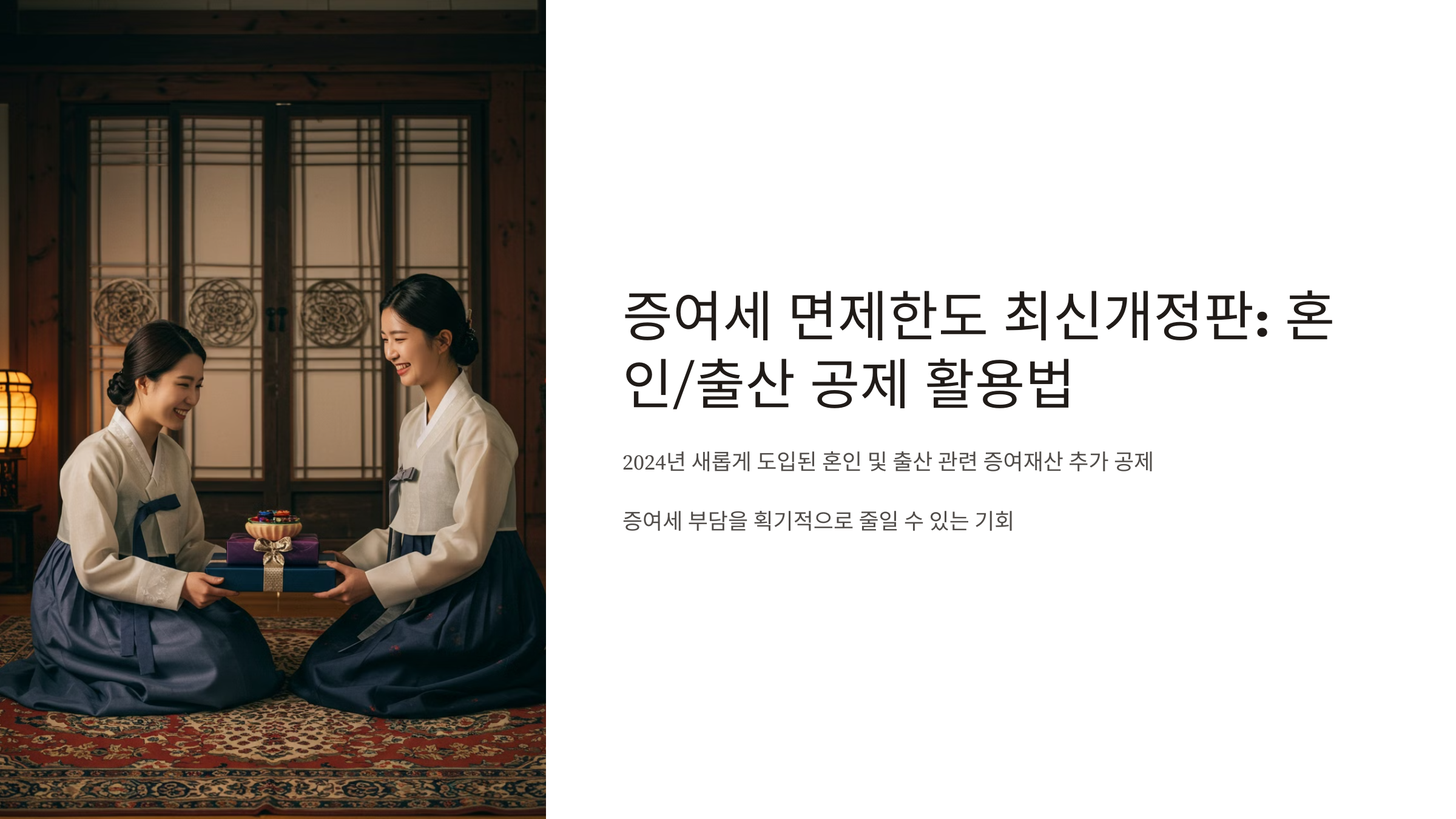 증여세 면제한도 최신개정판: 혼인/출산 공제 활용법, 2024년 새롭게 도입된 혼인 및 출산 관련 증여재산 추가 공제는 증여세 부담을 획기적으로 줄일 수 있는 기회입니다. 이 글에서는 혼인·출산 증여재산 공제의 구체적인 내용과 활용 전략을 전문가의 시각으로 분석하여, 증여를 계획 중인 분들께 실질적인 도움을 드리고자 합니다.