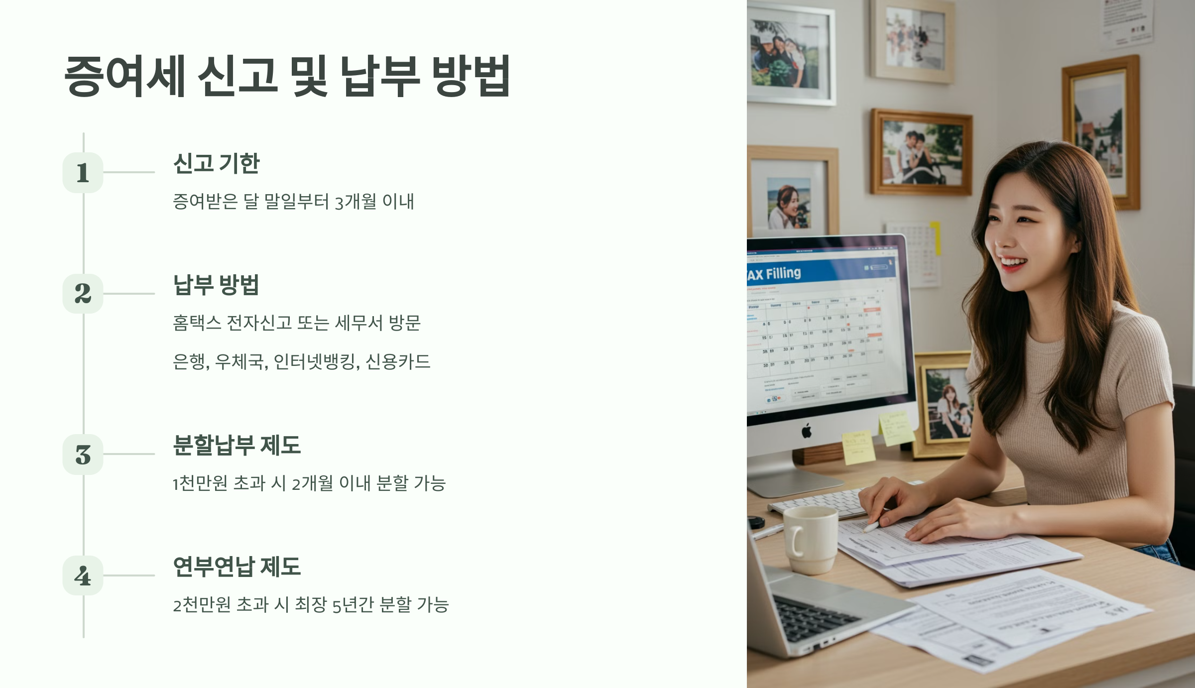 - 세무서 방문 신고: 증여세 신고서 및 관련 서류 제출
