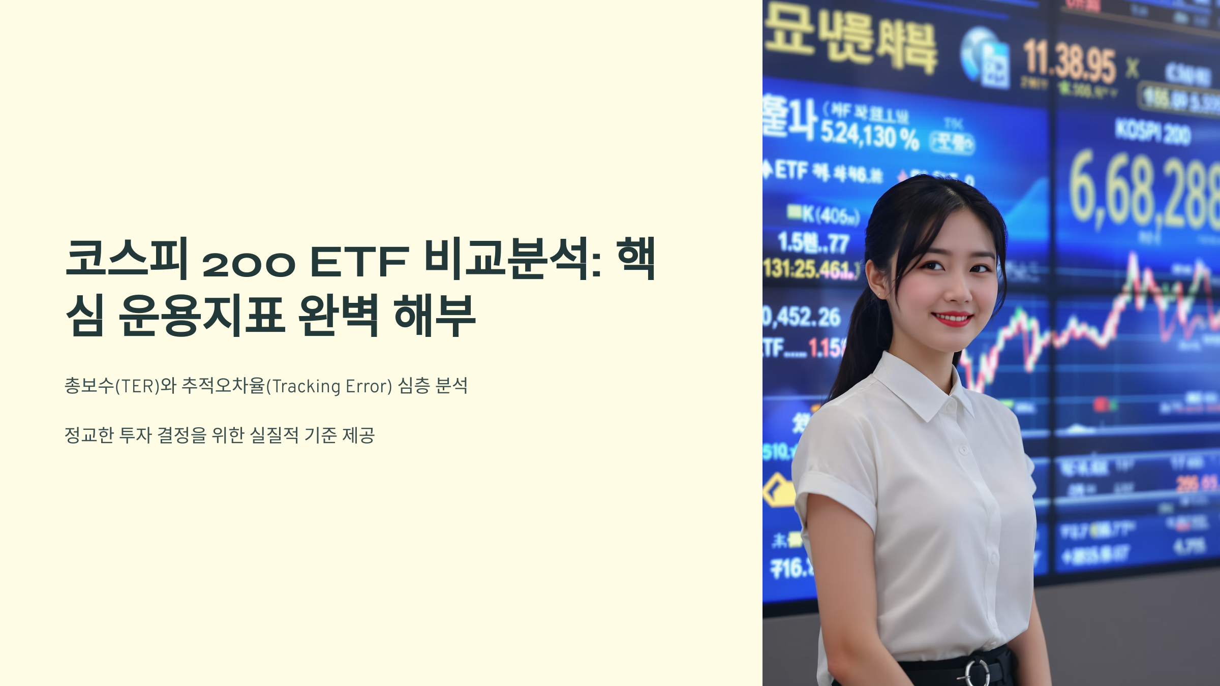 코스피 200 ETF 비교분석: 핵심 운용지표(총보수, 추적오차율) 완벽 해부는 우리나라 대표 시장지수인 코스피 200을 추종하는 상장지수펀드(ETF) 선택 시 가장 중요하게 고려해야 할 총보수(TER)와 추적오차율(Tracking Error)에 대해 심층적으로 파헤쳐, 투자자들이 보다 정교하고 정보에 입각한 투자 결정을 내릴 수 있도록 실질적인 분석과 기준을 제공하는 것을 목표로 합니다. 이 글을 통해 독자 여러분은 단순히 수치 비교를 넘어 각 지표가 의미하는 바와 실제 투자 수익률에 미치는 영향을 명확히 이해하게 될 것입니다.