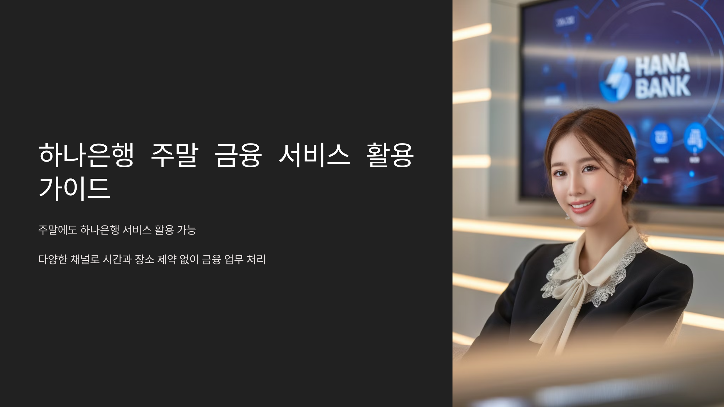 하나은행은 고객 편의를 위해 다양한 금융 서비스를 제공하고 있습니다. 주말에도 이러한 서비스를 최대한 활용하면 평일과 다름없이 금융 업무를 처리할 수 있습니다.