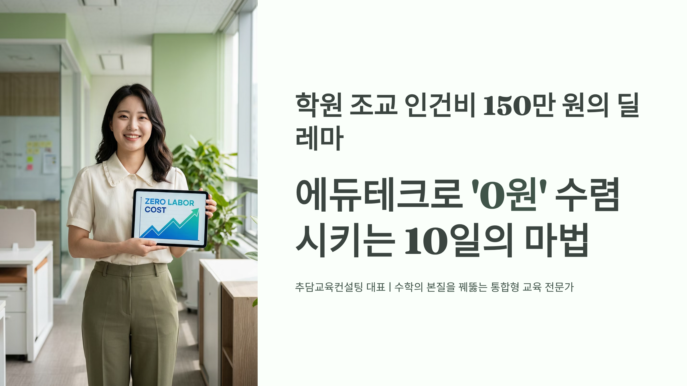 대한민국 학원가는 지금 거대한 전환점에 서 있습니다. 해마다 치솟는 최저임금과 극심한 강사 구인난 속에서 원장님들의 가장 큰 고민은 단연 고정적인 인건비 지출입니다. 이번 포스팅에서는 학원 조교 인건비 150만 원의 딜레마, 에듀테크로 '0원' 수렴시키는 10일의 마법이라는 핵심 주제를 통해 학원 운영의 뼈아픈 현실을 짚어보고, 이를 타개할 완벽한 대안을 현장 사례와 함께 제시하고자 합니다.